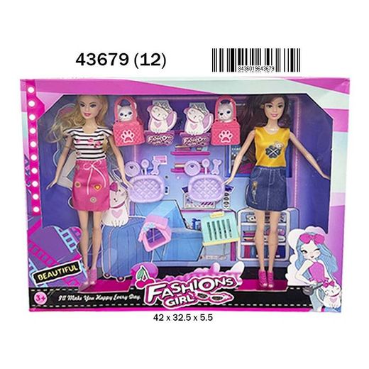 Caja de 2 muñecas con accesorios y mascotas de rama tritton