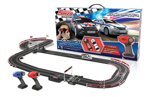 Disfruta de las más divertidas carreras de coches, con este increíble circuito a escala 1:43. Incluye 2 coches, barreras y banderines.