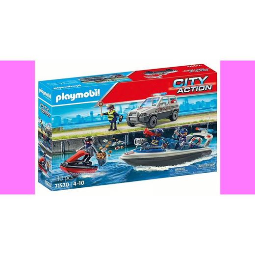 Embárquese en una emocionante misión acuática con el set *PERSECUCION POLICIAL EN EL AGUA* de PLAYMOBIL. Navegue por mares imaginarios mientras ayuda a los valientes oficiales a capturar a los fugitivos en una trepidante carrera contra el tiempo. Este juego invita a los pequeños a desarrollar sus habilidades narrativas y de resolución de problemas, fomentando el juego interactivo y dinámico.