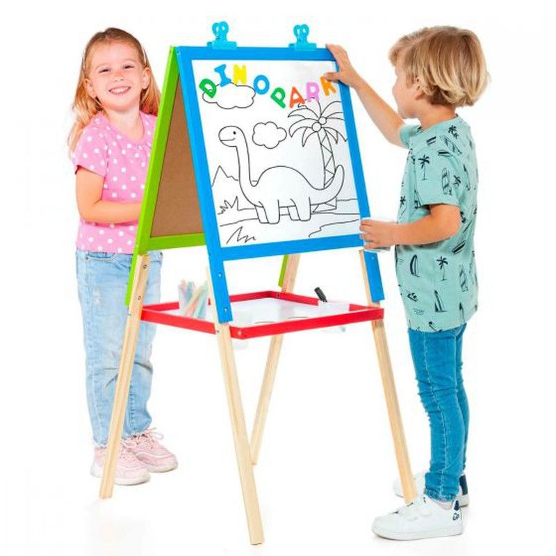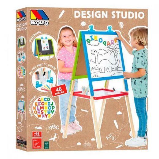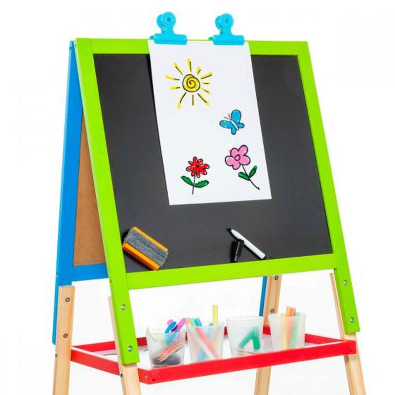 Descubre la Pizarra de Madera infantil de Moltó. Por un lado es una pizarra magnetica para niños, por el otro, una pizarra clásica para pintar con tizas. Incluye 26 letras magnéticas, 12 tizas, 2 clips para sujetar las hojas de dibujo, 1 rotulador borrable, un borrador y 4 vasos de almacenamiento para los accesorios. Nuestros juguetes de madera están fabricados cumpliendo la FSC, con materiales sostenibles seleccionados y con un proceso de fabricación eco-friendly. Los juguetes de madera Molto Nature están pintados a mano, con colores a base de agua no tóxicos, y cumplen con las más estrictas normas de seguridad.