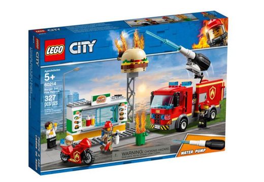 ¡No dejes que se queme la hamburguesería del barrio con el impresionante set LEGO® City Rescate del Incendio en la Hamburguesería (60214)! Se compone de una hamburguesería con su letrero, elementos con forma de fuego que caen, una ventana de servicio corredera y un cubo de basura. Este divertido set cuenta también con un camión de bomberos con cabina para una minifigura, 2 compartimentos de almacenamiento, parte trasera giratoria y cañón orientable (novedad en enero de 2019) con función de “chorro de agua”. Además, contiene una moto con espacio para un extintor, un hacha de bombero (novedad en enero de 2019) y 3 minifiguras.