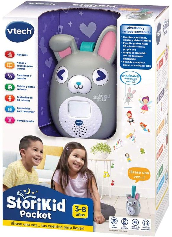 Con StoriKid Pocket, el niño puede disfrutar escuchando bonitas historias, poemas, canciones o chistes. Los padres también pueden grabar su propio cuento o audios. Hasta 5 pistas de 10 minutos cada una.Contenido adicional para descargar gratis a través de Explora Park.
